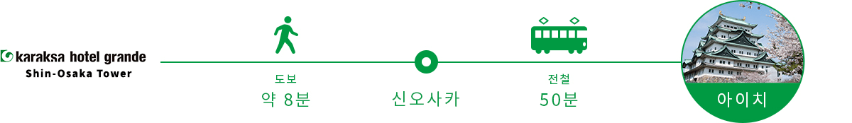 카락사 호텔 그란데 신오사카 타워에서 약 1시간 6분