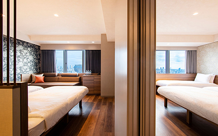ファミリーやグループに最適なコネクティングルーム。隣り合う部屋を内扉でつなぐことで2部屋を自由に行き来でき、バスルームも2か所使えて便利です。内扉はお休みの際、閉めることもできます。