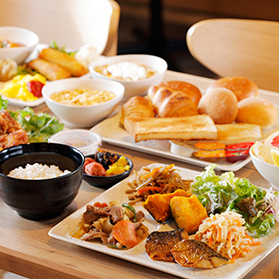 賑やかな狸小路商店街に面しながらも、落ち着いたモダンな店内です。北海道産の旬の食材や味覚を豊富に取り入れた、北の大地の朝食をブッフェスタイルでお楽しみいただけます。