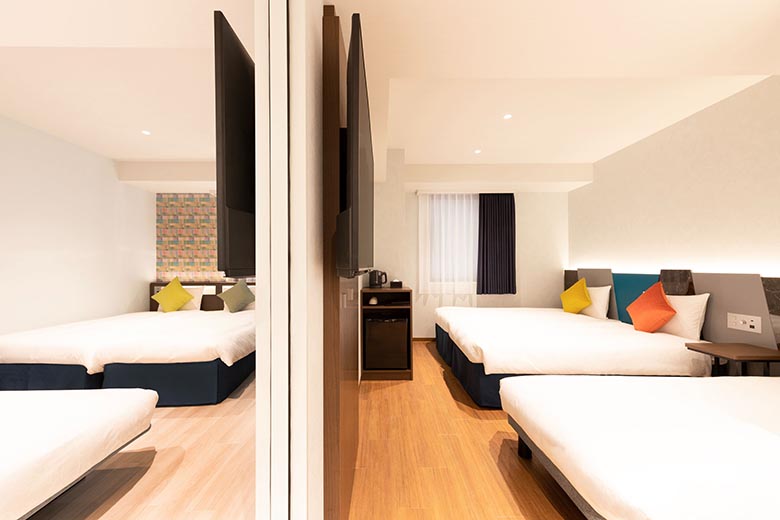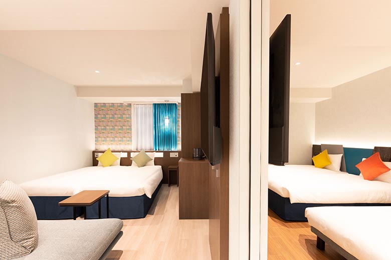 不仅有双大床房及四人房,也有最多可供6人使用的连通房,提供多样化的客房选择