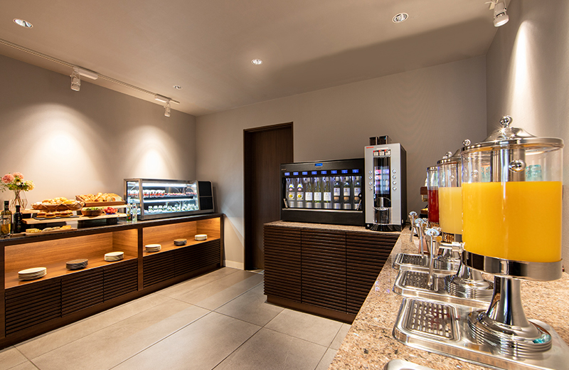 採自助形式。早餐時間提供麵包,果汁,咖啡。下午茶時間提供輕食,點心等。BAR時間提供果乾,起司,火腿以及堅果等與美酒相配的輕食。